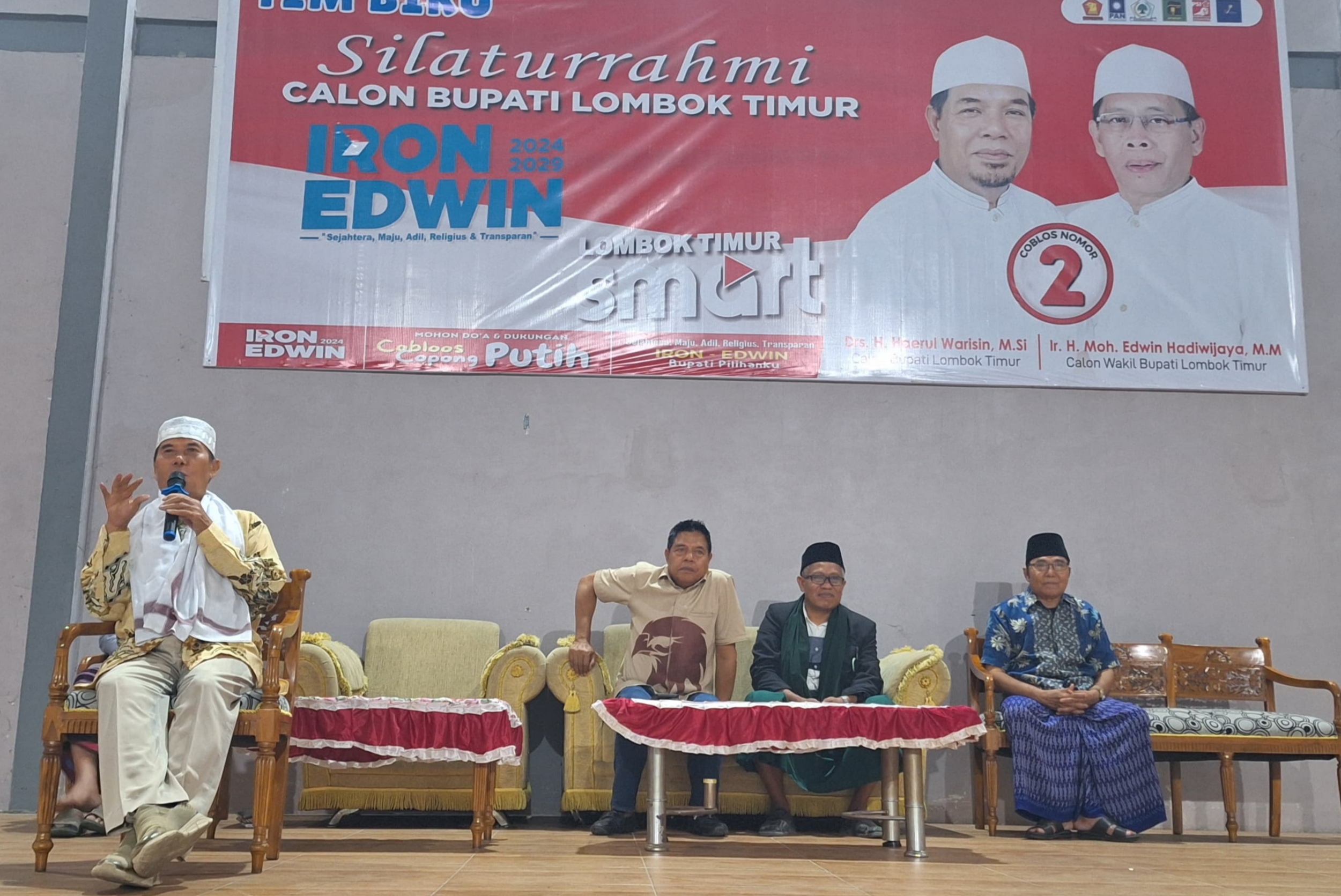 Lombok Timur (Penegak.com)- Bupati Lombok Timur dua periode, H. Moh Ali Bin Dachlan ikut menghadiri acara silaturahmi pasangan calon Bupati dan Wakil Bupati Lombok Timur nomor urut 2, H. Haerul Warisin dan H. Moh Edwin Hadiwijaya (Iron-Edwin), pada Minggu malam (20/10) lalu di Gedung Esoch Sport Paokmotong.