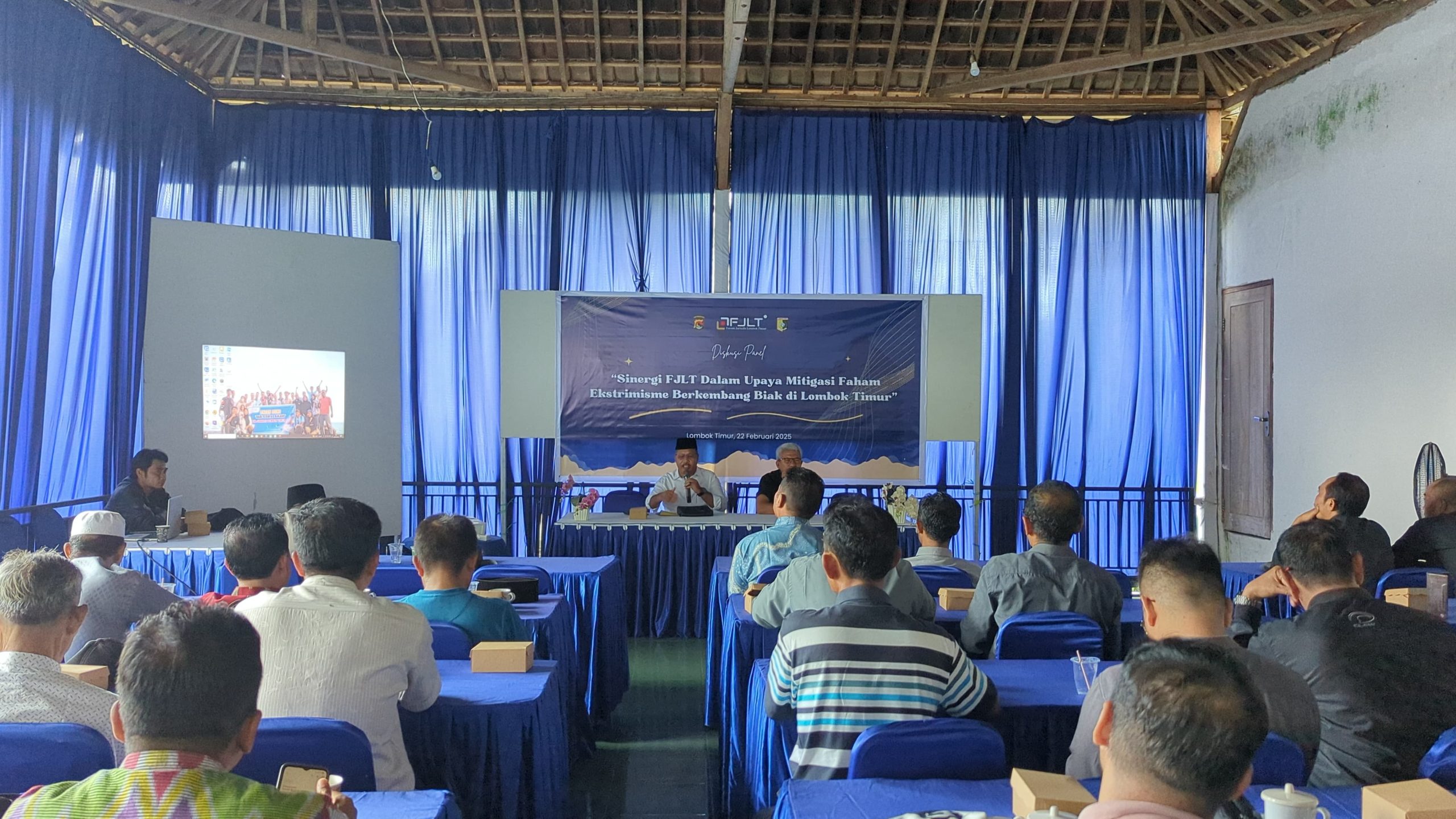 Forum Jurnalis Lombok Timur (FJLT) bekerja sama dengan Polda NTB menggelar kegiatan sinergi dengan 50 kepala desa dan lurah se-Lombok Timur dalam upaya mitigasi paham ekstremisme. Kegiatan yang berlangsung di Selong, Sabtu (22/2), ini menghadirkan Kepala Dinas Pemberdayaan Masyarakat dan Desa (PMD) Lombok Timur, Salmun Rahman, serta Kepala Badan Kesatuan Bangsa dan Politik Dalam Negeri (Bakesbangpoldagri) Lombok Timur, H. Mustofa, sebagai narasumber.