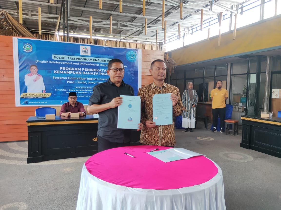 Penegak.com – Sikur – SMK Negeri 1 Sikur meluncurkan program English RISE (English Reinforcement and Immersion for Skensasi Excellence), sebuah inisiatif pembelajaran bahasa Inggris intensif bagi siswa kelas XI dari berbagai jurusan. Program ini merupakan hasil kolaborasi dengan Cambridge English Course (CEC) Pare, Kediri, dan akan berjalan selama empat bulan (Agustus–November 2025).